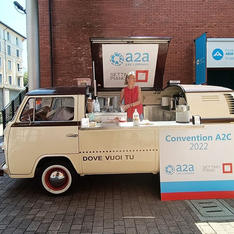 Perfetto come punto di accoglienza, corner promozionale, food truck o semplice elemento scenografico per creare l’atmosfera giusta: il furgone diventa protagonista, rafforza l’identità del tuo brand e rende l’evento memorabile per tutti i partecipanti.