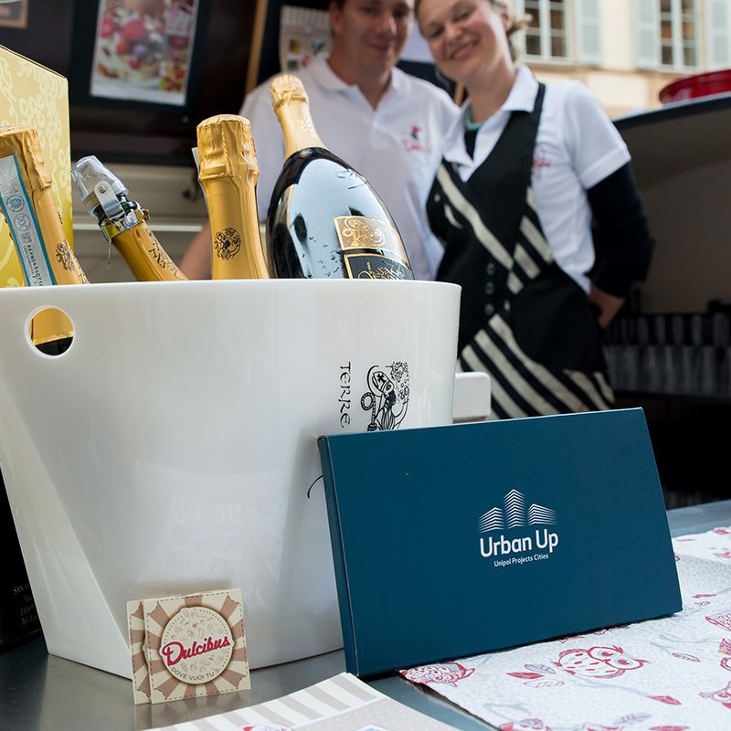 Potrai personalizzare tetto apribile con brand e pubblicità aziendali e nel contempo offrire un rinfresco o una pausa originale e divertente ovunque sia la sede della tua azienda.