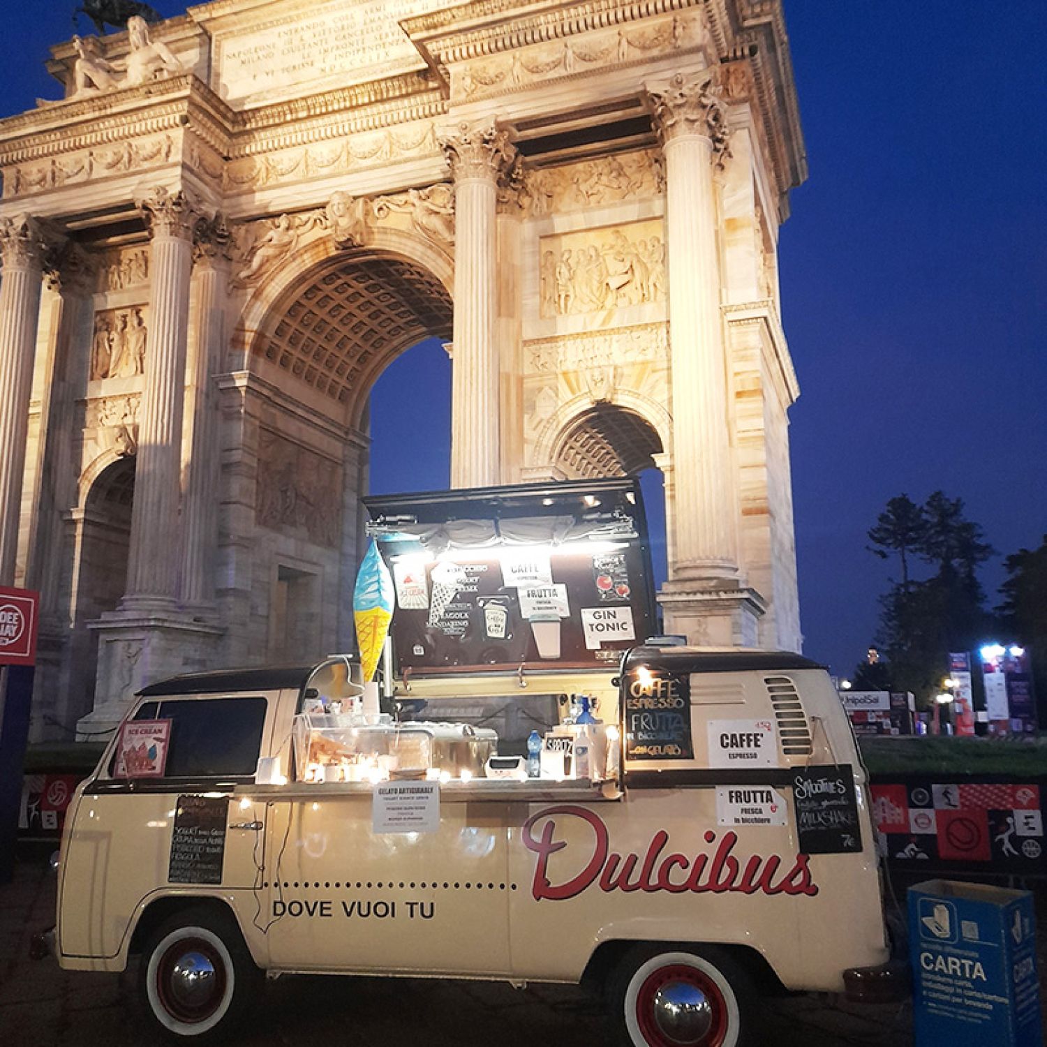 Dulcibus è la soluzione ideale per offrire agli invitati un piacevole e gustoso rinfresco OPENBAR oppure un angolo gelateria vintage ed originale.