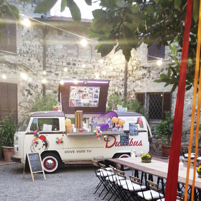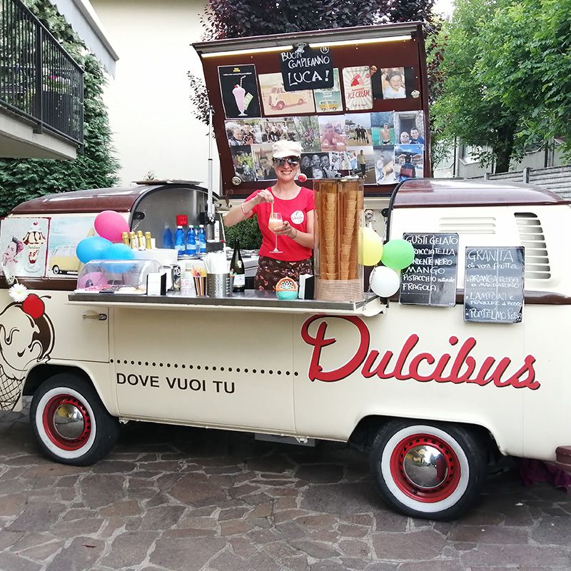 Dulcibus è la soluzione ideale per offrire agli invitati un piacevole e gustoso rinfresco OPENBAR oppure un angolo gelateria vintage ed originale.