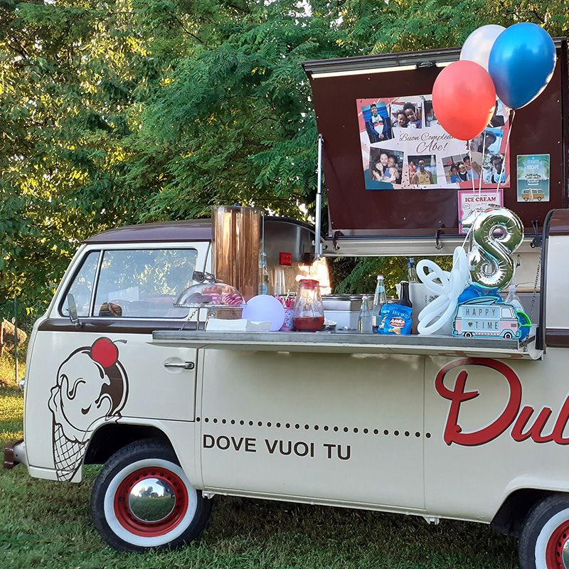 Un Volkswagen d’epoca, trasformato con amore e creatività in una vera e propria gelateria su ruote: il mio pulmino anni ’70 non passa inosservato. È l’ingrediente perfetto per aggiungere un tocco unico e gustoso alla tua location.